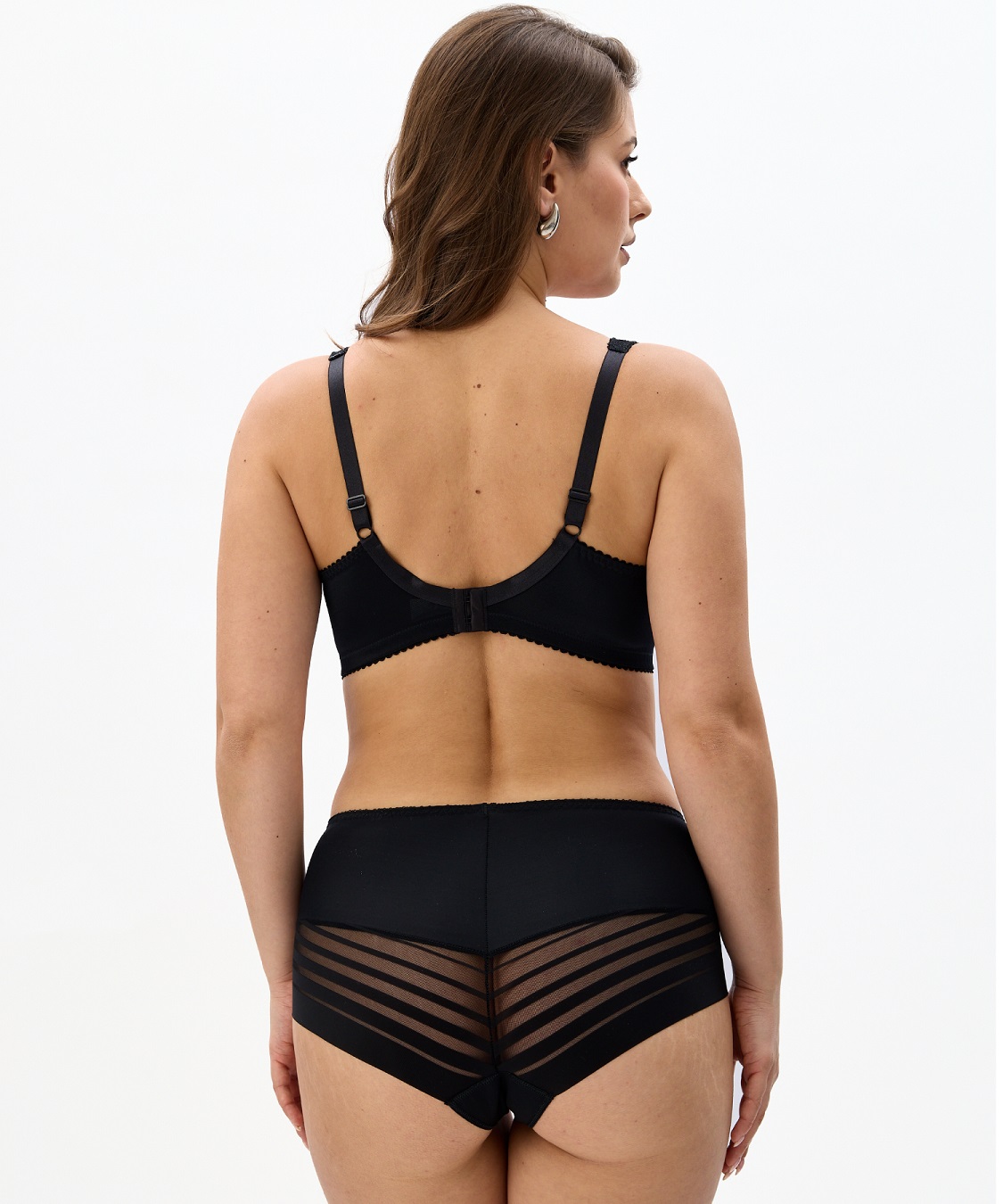 Бюстгальтер бескаркасный из неэластичного кружевного полотна, трикотажного полотна и эластичного полотна. Чашка мягкая. Бретель широкая на дубляже, с регулировкой длины сзади.