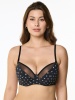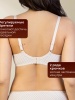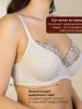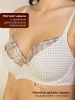 Бюстгальтер из неэластичного трикотажного полотна, на каркасах. Чашка мягкая, с тройным диагональным членением, с универсальной поддержкой, верхняя деталь из вышивки на неэластичной сетке.