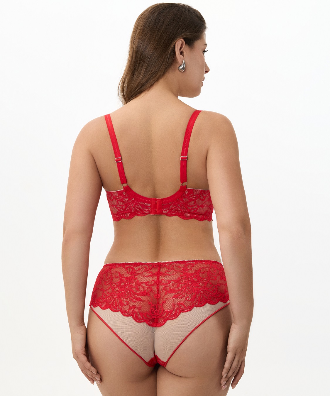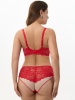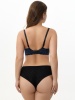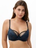 Бюстгальтер из эластичного кружева, на каркасах. Двойные мягкие чашки. Верхние чашки из эластичного кружева. Нижние чашки из не эластичной сетки с тройным диагональным членением. Боковая деталь из кружева на подкладке из эластичной сетки.