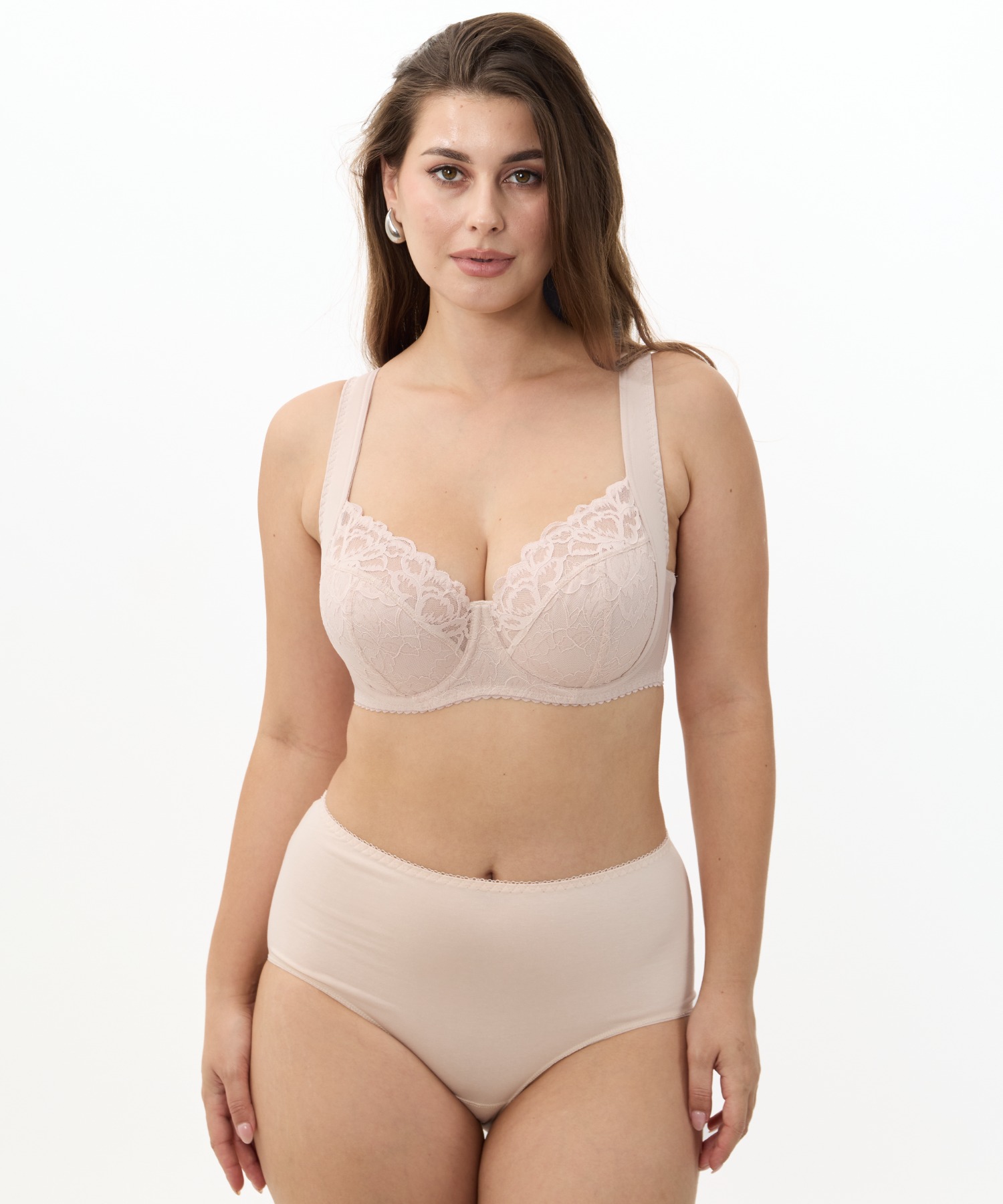 Бюстгальтер с мягкой чашкой, на каркасах. Чашки мягкие Т-образного членения и боковой корректирующей деталью, переходящей в бретель. Нижние детали чашек на подкладке из х/б трикотажного полотна. Боковые корректирующие детали из эластичного функционального полотна. Для обеспечения максимальной поддержки и комфорта боковые детали имеют подкладку из тонкого дубляжа на хлопке. Пояс усилен упругой пластиной