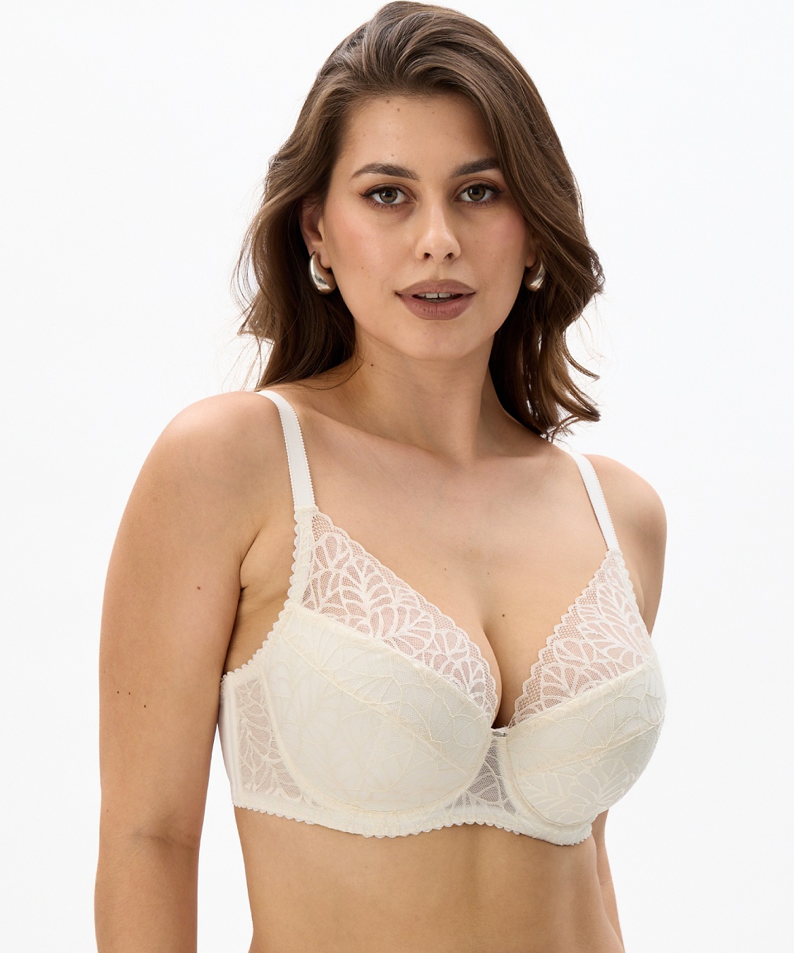 Бюстгальтер из эластичного кружева и эластичного полотна, на каркасах. Чашка на дубляже с хлопком. Пояс усилен двумя упругими пластинами.