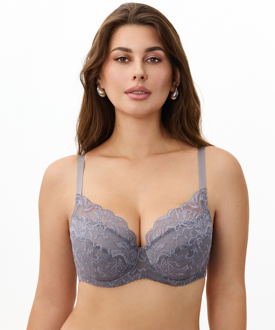 Бюстгальтер с дублированной чашкой из эластичного кружева,на каркасах. Детали чашек на подкладке из дублированного полотна с хлопком. Чашки с тройным членением. Упругие пластины в боковых деталях стана.